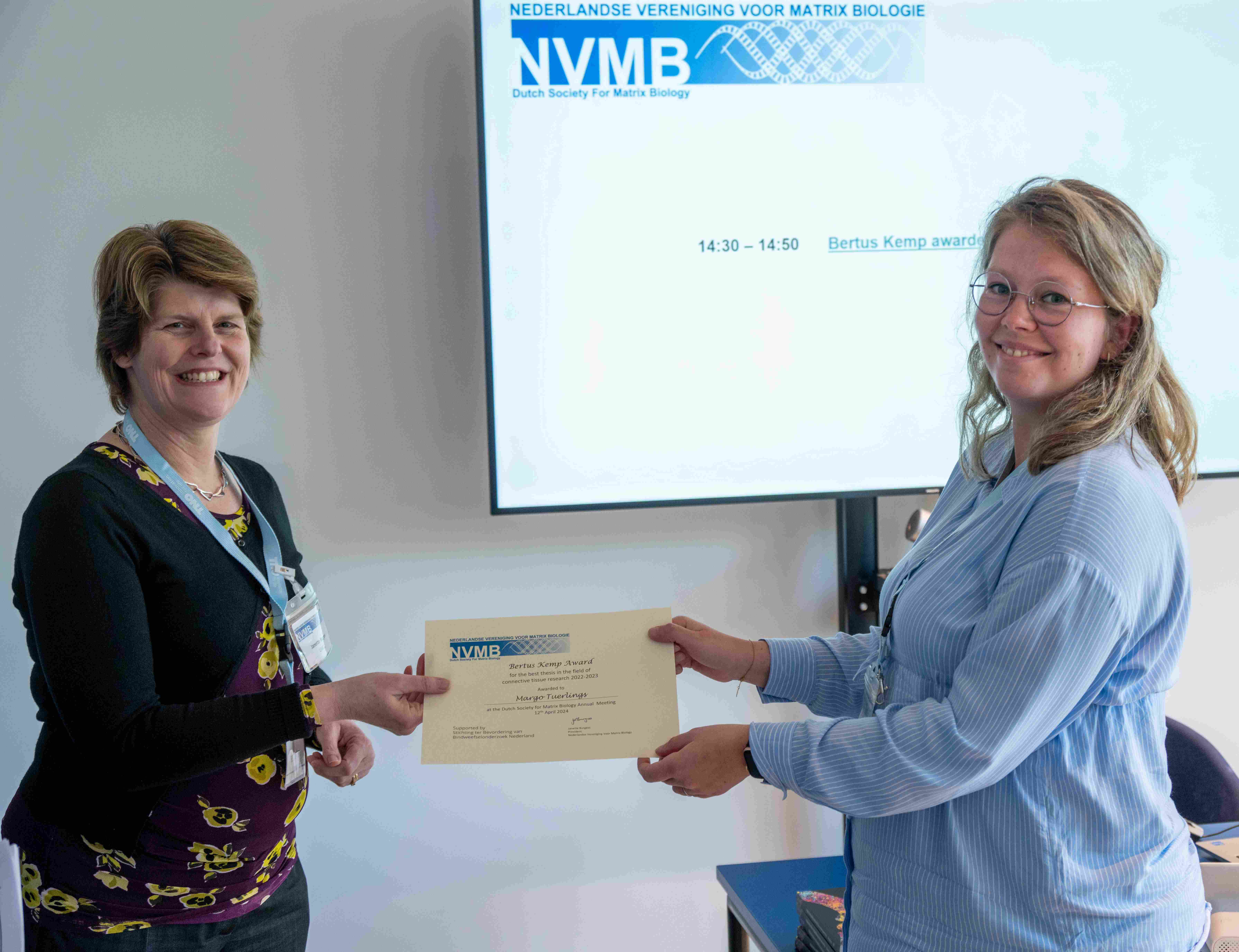 Every other year the SBBN, ‘Stichting ter Bevordering van Bindweefselonderzoek Nederland’, awards the Bertus Kemp prize for the best thesis in the field of connective tissue research. On behalf of the board of the SBBN we invite you and your colleagues to submit a thesis (to be) defended between January 1st and December 31st 2024.